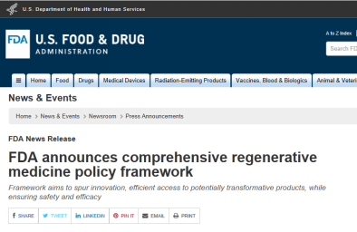 美國食品和藥物管理局11月16日宣布,它正在發(fā)布一個新的政策框架,可以更迅速地為患者提供涉及人體細胞和組織(如干細胞)的治療,同時對引起安全問題的產品加強執(zhí)法力度。FDA專員Scott Gottlieb博士表示:我們正在采用建立在現(xiàn)有法規(guī)基礎上的,基于風險…
